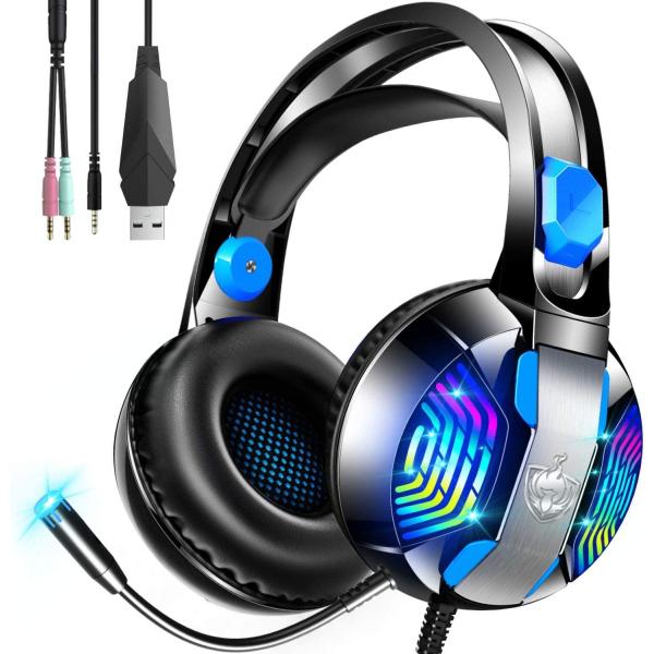 ■ゲーミングヘッドセット ヘッドホン ps5 ヘッドセット マイク付き ゲーム用 LEDライト付き ノイズキャンセリング USB有線 軽量 男女兼用