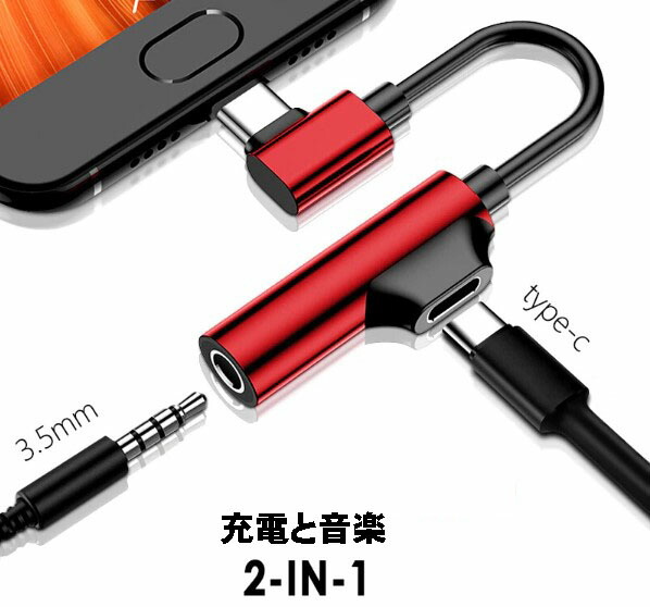 ■Type-C 充電 イヤホン 変換 アダプター 2in1 コンバーター ヘッドセット ヘッドホン デュアル チャージ タイプC スマホ 音楽 通話 イヤホ
