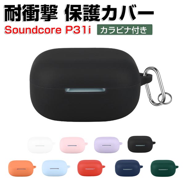 Anker Soundcore P31i ケース 柔軟性のあるシリコン素材 カバー イヤホン・ヘッドホン アクセサリー CASE 耐衝撃 落下防止 収納 保護 おしゃれ アンカー サウンドコア P31i ソフトケース 便利 実用 カバーを装着したまま、充電タイプ可能です カラビナ付き