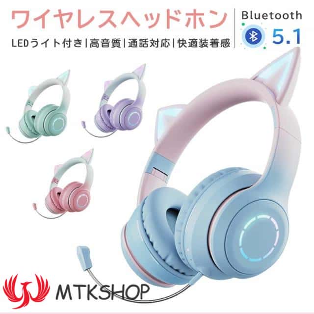 ■可愛い ヘッドホン マイク付き ワイヤレス ヘッドホン 有線 & 無線 イヤホン 折りたたみ式 ヘッドフォン 高音質 LEDライト 密閉型 ヘッドセ