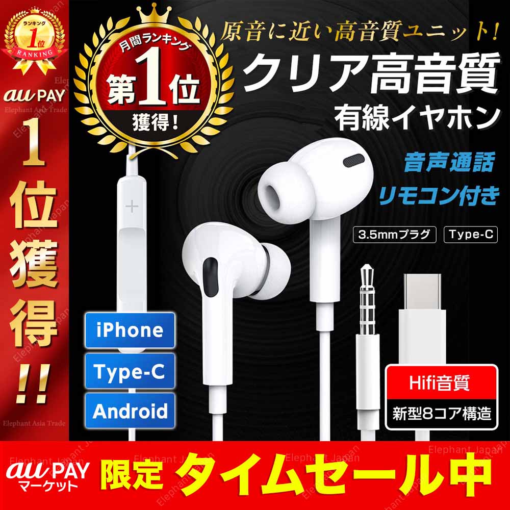 ■イヤホン 有線 ヘッドホン カナル型 イヤフォン Type-C 3.5mm マイク付きイヤホン iPhone アンドロイド スマホ