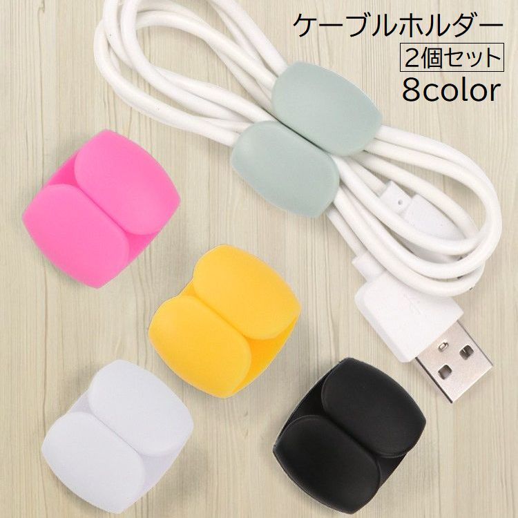 ■ケーブルホルダー 2個セット ケーブルクリップ コードクリップ シリコン製 まとめる 整理整頓 収納 ケーブル イヤホン 無地
