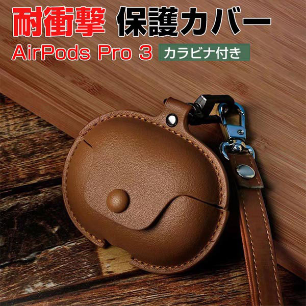 Apple Air Pods Pro 3 ケース PUレザー素材の カバー イヤホン・ヘッドホン アクセサリー アップル エアーポッズ プロ 第3世代 CASE 耐衝撃 落下防止 収納 保護 創意 人気 おすすめ 傷防止 カバー を装着したまま、充電タイプ可能です カラビナ付き ストラップ付き