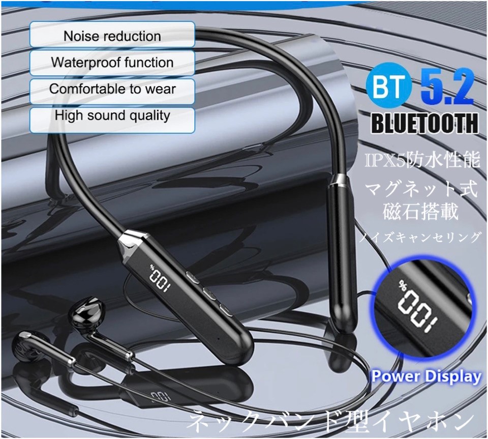 ■3 イヤホン Bluetooth 5.2 IPX5 ワイヤレスイヤホン ネックバンド型イヤホン 首掛け スポーツ防水 ノイズキャンセリング イヤホン