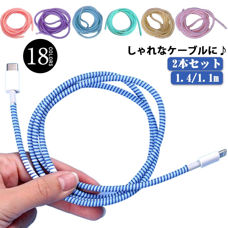 ■ロング 充電ケーブル カバー USBケーブル 保護プロテクター ケーブルカバー カール カバー イヤホン 2本セット 1.1m 1.4m 断線防止 折り