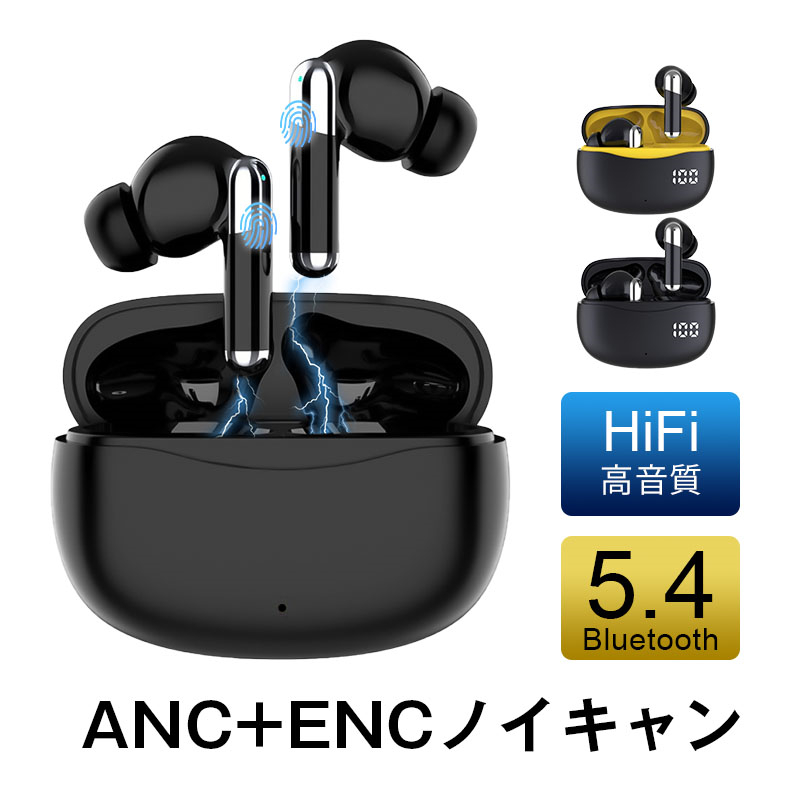 ■ワイヤレスイヤホン Bluetooth5.4 イヤホン カナル型 無痛装着 自動ペアリング ANC+ENC 外音取り込み機能 ステレオサウンド 長時間持続作