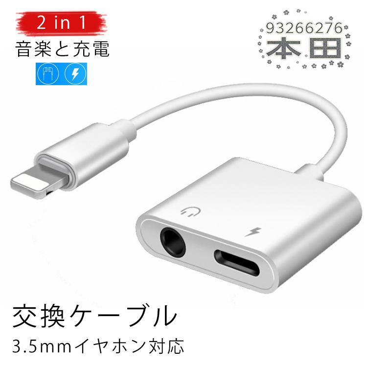■iPhone 2in1 イヤホン変換ケーブル イヤホン変換アダプタ アダプター 充電 同時 ヘッドホン イヤホン 変換 ケーブル 充電しながら 音楽