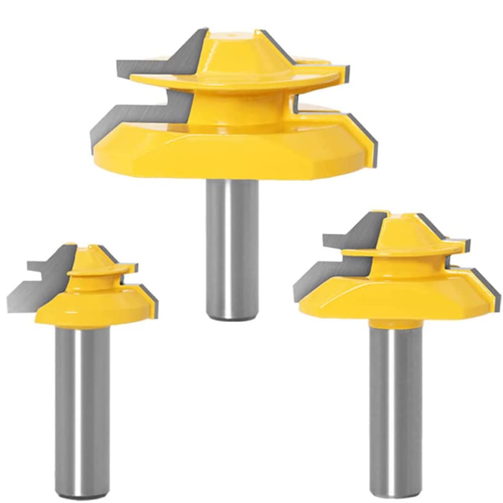 ■Bestgle トリマービット45° 3ピース 45度ほぞカッター12.7mmシャンク45度ロック斜接設計ボーズ面ビット1/2''面取りカッタータングステ