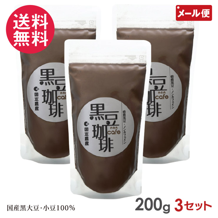 ■黒豆珈琲 200g×3セット 国定農産 岡山県産 黒豆コーヒー 黒大豆 小豆 100% 使用 メール便 送料無料
