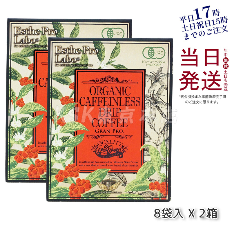 ■【2個セット】エステプロラボ オーガニック カフェインレス ドリップコーヒー グランプロ 8g×8袋入 「カフェイン約99.9%カットドリップ