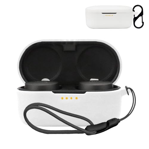 デノン Per L Pro AH-C15PL ケース カバー ワイヤレス イヤーホン シリコン 保護ケース (カラビナ付き+ストラップ付き ) 落下防止 キズ防止 耐衝撃 装着充電可能 防水 防塵 (ホワイト)