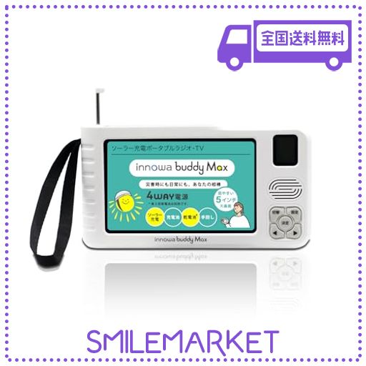 ■INNOWA(イノワ) BUDDY MAX 手回し ソーラー充電 ポータブルテレビ・ラジオ AM/ワイドFM/短波 5インチ大画面 4WAY電源 LEDライト サイレン