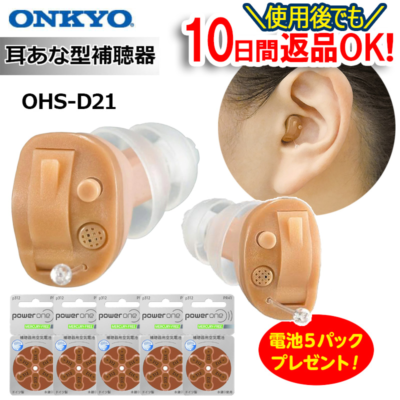 左右どちらの耳にも使えるコンパクトな耳かけ型。コンパクトで目立ちにくい。カンタン装着 & 快適な装着感。コンパクトなサイズに加え2.2gと軽量なため、装着時の負担を軽減しています。 左右どちらの耳にも使えるコンパクトな耳かけ型。コンパクトで目立ちにくいコンパクトなサイズに、耳にかける本体部はベージュ、耳に挿入するイヤフックとインサートチューブは透明の仕様のため、装着していても目立ちにくいデザインになっています。カンタン装着&快適な装着感耳にかけるだけで装着できるだけでなく、左右兼用仕様の為、左右を気にせずに手軽に装着することができます。コンパクトなサイズに加え2.2gと軽量なため、装着時の負担を軽減しています。また、耳穴のサイズに合わせて調整することができるよう、大・小の耳せんを同梱しています。軽度?中等度難聴まで幅広い聴力に対応最大音響利得42d Bを実現しており、中等度難聴の方まで安心してお使いいただけます。雑音の抑制機能補聴器に入ってくる音を周波数ごとに8分割にして処理することによって、不要な生活雑音は抑え、聞きたい音や会話をより自然で滑らかに聞くことができます。ハウリング抑制機能デジタル特性を活かした強力なハウリング抑制機能を搭載しており、不快な「ピー」音を抑制します。連続使用時間 約170時間連続で約170時間の使用が可能です。(電池寿命は使用条件によって異なります。)プッシュボタンで音量切り替えボタンを押すだけで、聞こえの状況や環境に合わせて音量を4段階で切り替えることができます。防塵防水保護等級IP67規格に対応日常の使用環境を考慮し、防塵防水保護等級IP67規格に対応しています。日常の洗顔、汗、雨の時にも安心して使えます。スポーツやガーデニングなどの屋外活動時でも安心です。(完全防水ではないため、液体に浸す、洗う、長時間にわたり高温、低温、多湿にさらすことは避けてください。)「粉塵が中に入らない」「一時的に一定水圧の条件に水没しても影響がない(水深1mに30分間浸かっても、浸水がないことを確認。)」ことを意味します。完全防水とは異なるので次の注意が必要です。・保護等級に関わらず補聴器を液体に浸したり、洗ったりすることを推奨いたしません。・OHS-EH21は、液体や湿気の多い状態にさらされることを前提として設計されてはおりません。・完全防水(メンテナンスフリー)ではありません。/日用品・化粧品・医薬品/介護用品・シニアサポート/補聴器・集音器/オンキヨー ONKYO/ONKYO/4056839134474/コジマ/kojima/通販/通信販売/調理家電/生活家電/家電/キッチン家電/ネットショップ