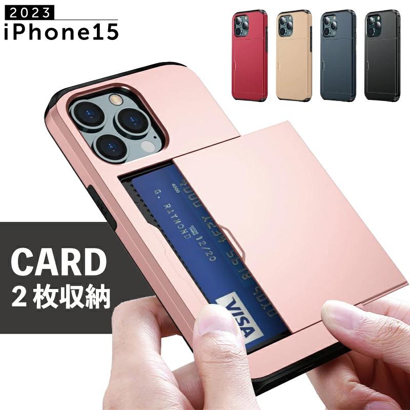 ■カード2枚収納可能 iPhone カード収納 iphone15 ケース カード 背面 iPhone15pro iPhone15plus 耐衝撃 シンプル かっこいい スマホ保護カ