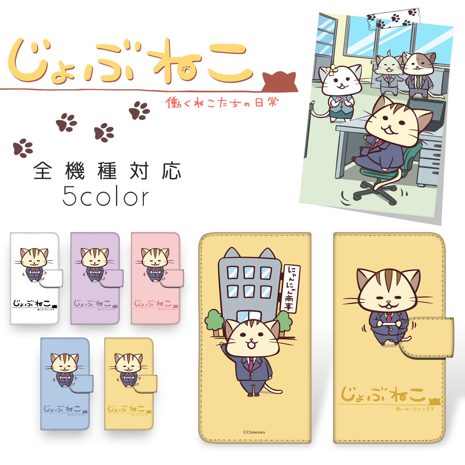 ■じょぶねこ 〜働くねこたちの日常〜 / 名刺 スマホ 全機種対応 手帳型 iPhone17 17e Air iPhone16 Pixel 10 10 Pro 8a Xperia 10 IV Gala