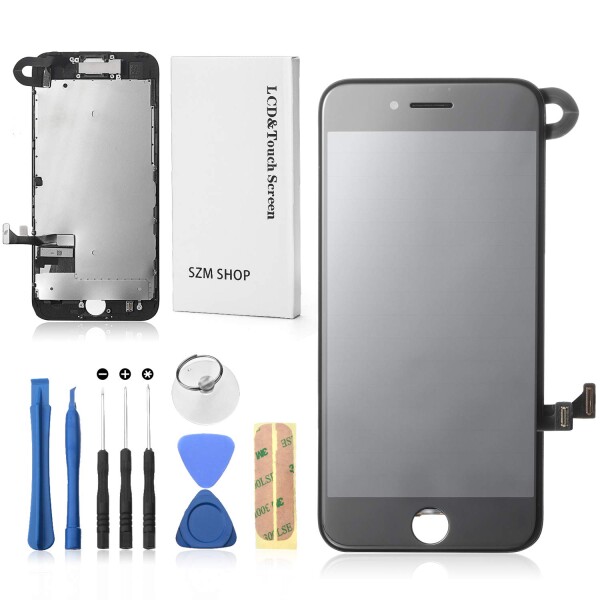 ■SZM iPhone7 修理交換用フロントパネルセット 液晶パネルセット タッチパネル 修理パーツ (スピーカー +フロントカメラ付き)ホームボタ