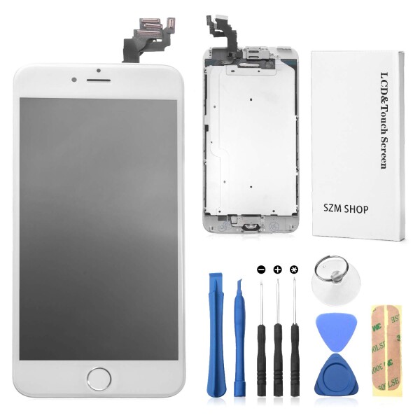 ■SZM iPhone6 plus フロントパネル カスタムパーツ 液晶パネル LED スクリーン 修理パーツ 工具付属(スピーカー +フロントカメラ+ホーム