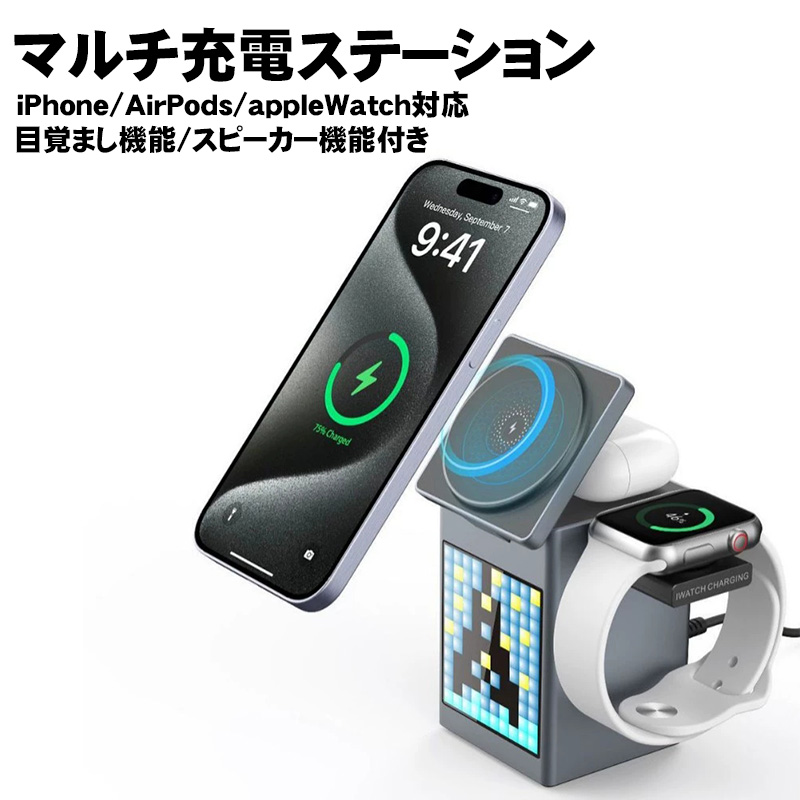 ※他店舗と在庫併用の為、品切れの場合は、ご容赦ください。【QIワイヤレス充電】QI対応のiphone8以上 Android を本体に乗せるだけで充電が開始します。寝ている間に充電してくれるので、とても便利。ワイヤレス充電では、5V 2Aのアダプターの使用で充電スピードが上がります。※スマホケースをつけたままワイヤレス充電を行うことは可能です。ただケースの素材(例えばアルミならNG)やケースの厚みが3mm以上あるものについては充電が影響されます。【高音質ステレオスピーカー】携帯等デバイスからお気に入りの音楽を再生できます。高性能なステレオスピーカーを搭載してますので、広がりのあ