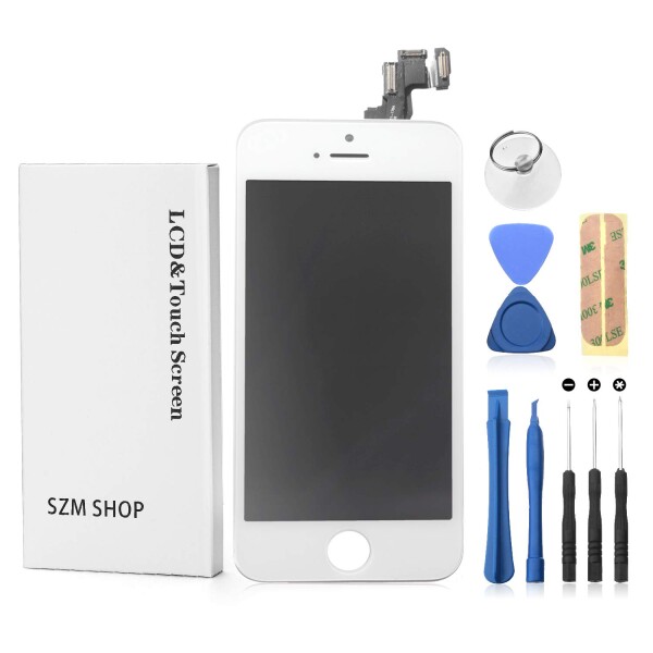 ■SZM iPhone5S 修理用フロントパネルセット(スピーカー +フロントカメラ付き) 修理パーツ 工具付属 ホームボタン付きません(5S白)