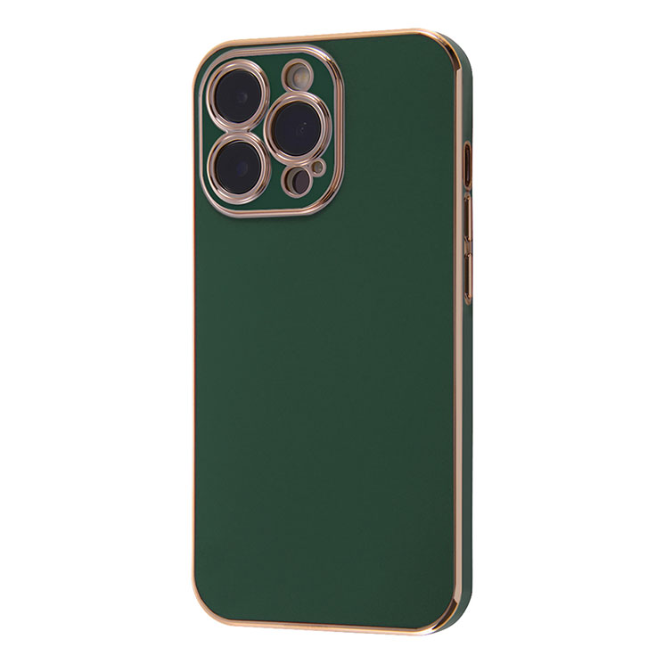 ■iPhone15Pro 3眼 ケース クリア ホワイト ゴールド メタリック フレーム 透明 耐衝撃 無地 カメラ 保護 カバー ソフト TPU