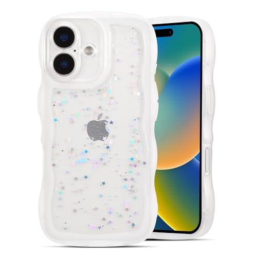 ■iPhone 16 用 ケース クリア TPU カバー ウェーブ おしゃれ 韓国 可愛い グリッター 透明 軽量 耐衝撃 滑り止め スマホケース ワイヤレス