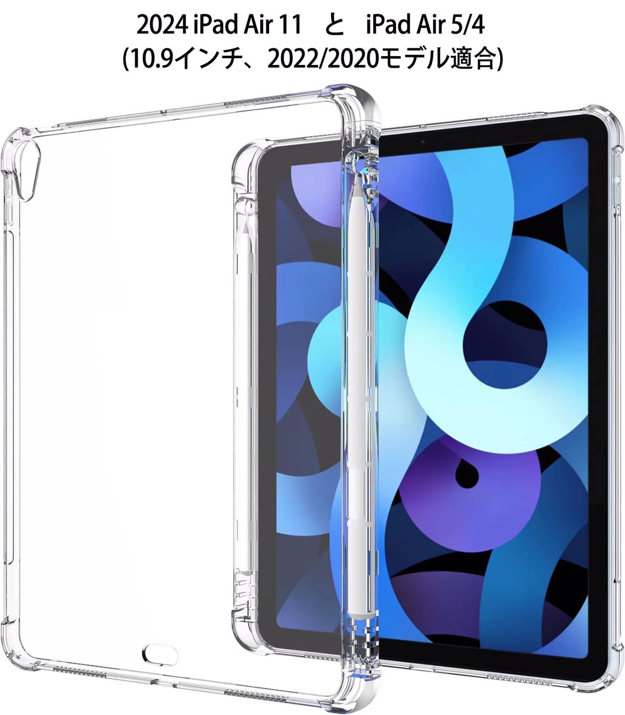 ■ケース iPad Air 11 インチ M2 (2024)、iPad Air 5/4 (10.9インチ、2022/2020モデル、第5/4世代用) ソフトTPU 透明 耐衝撃 カバー Penc