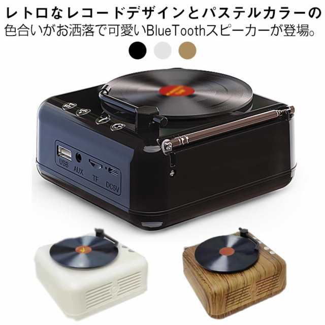 ■1000mAh Bluetooth スマホ スピーカー ポータブル レコード風 女性 レトロ PC パソコン USB バッテリー スマートフォン おしゃれ 無線 ア