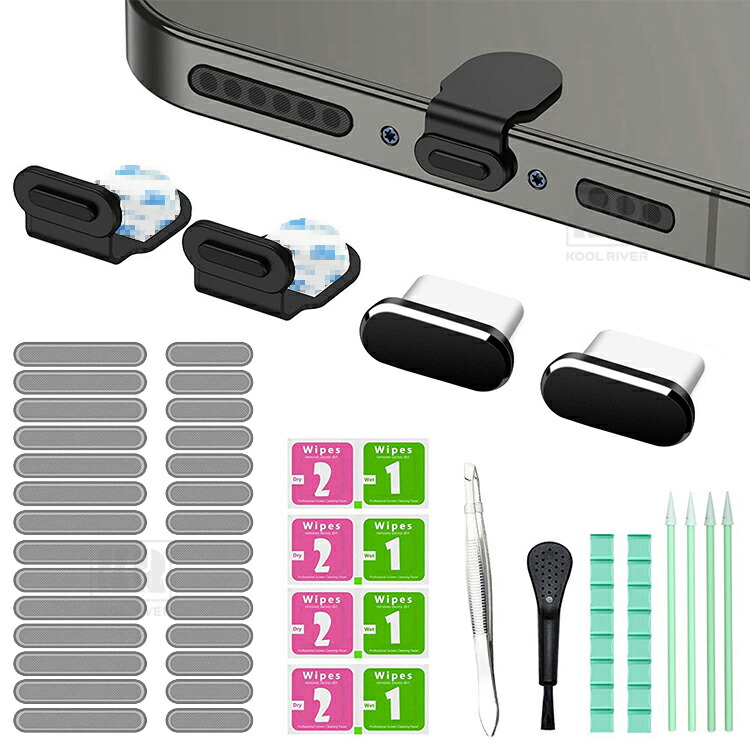 ■iPhone17 スマホ スピーカー 充電口 クリーナー 掃除キット メンテナンス 綿棒 ブラシ 防塵ステッカー 充電口キャップ 防塵 埃取り Type-