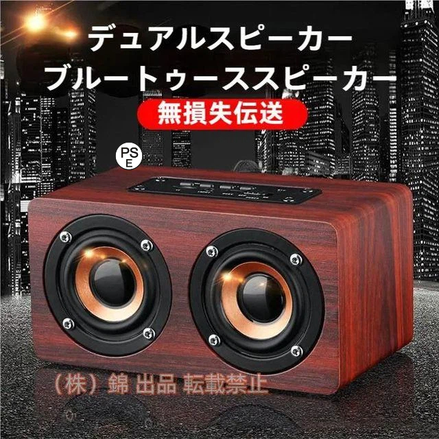 ■スピーカー Bluetooth 5.0 木製 ブルートゥーススピーカー ウッド 小型 ステレオ ワイヤレス接続 スマホ タブレット PC モバイル