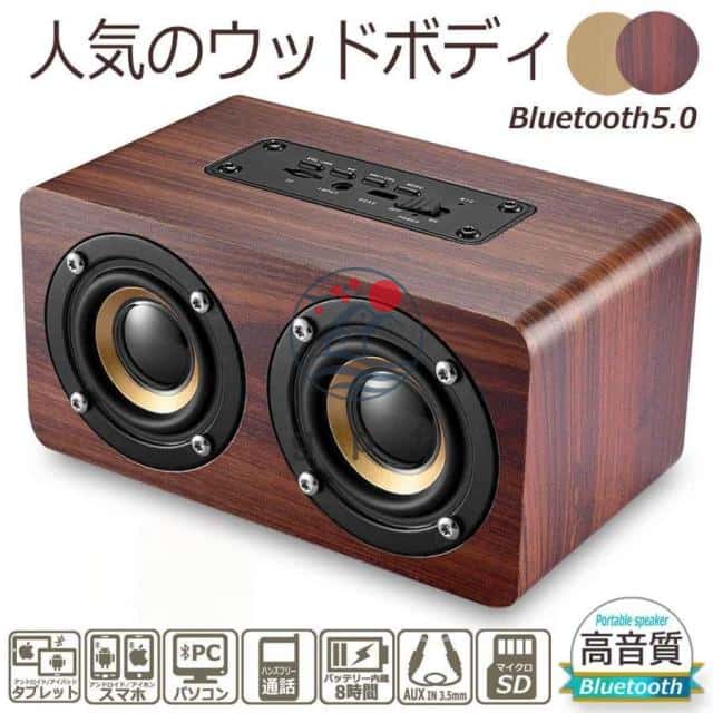 ■ブルートゥーススピーカー 無線接続 Bluetooth テレオ ワイヤレス スピーカー 小型 家庭 HIFI スマホ タブレット 木製 ウッド PC モバイ