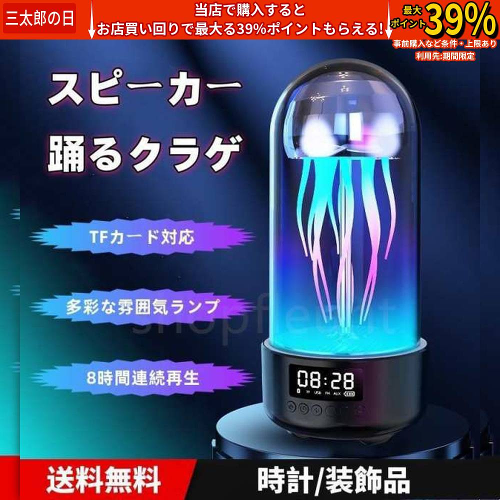 スピーカー 雰囲気ライト ワイヤレススピーカー Bluetooth 踊るクラゲ 時計 ナイトライト LED ブルートゥース 高音質 HIFI スマホ プレゼント ギフト