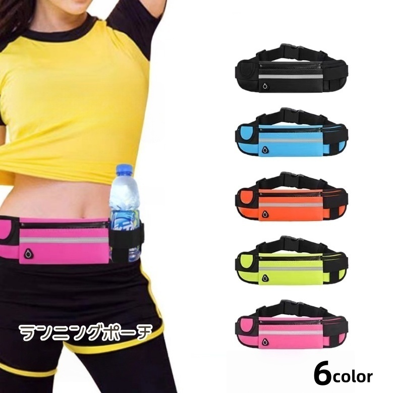 ■ランニングポーチ レディース メンズ ボディバッグ ウエストポーチ バッグ 鞄 ウエストゴム ボトル イヤホン スマホ ランニン