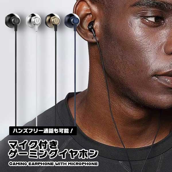 イヤホン 有線 マイク付き インイヤー型 ゲーム リモート ゲーミングイヤホン 軽量 PC PS4 タブレット ノートPC スマホ 通話可能 ハンズフリースタイリッシュで多機能なインイヤー式ゲーミングイヤホンです♪インイヤー型イヤホンなので、カナル型イヤホンに比べて、耳への圧迫が少ないため疲れにくく、耳が痛くなりにくいです。つけているのを忘れるほどの超軽量ストレスフリー設計が圧迫感のない軽いつけ心地でカジュアルに音楽を楽しめます。超軽量で、心地の良い装着性♪耳への収まりも良いコンパクトなボディです。ダイナミックドライバーを採用しており、豊かな低音はもちろん、小さな音量に設定しても迫力のあるゲームサウンドを実現します。マイクを内蔵しており、スマートフォンでのハンズフリー通話なども行うことが できます。電話応答、電話終了、音楽再生/停止の操作が可能です。ケーブルにはソフトで軽く、絡まりにくい電磁遮蔽ケーブルを採用!仕様:Φ3.5mm L型ミニプラグカラー:シルバーホワイト、ブラック、ゴールド、ネイビー※商品の