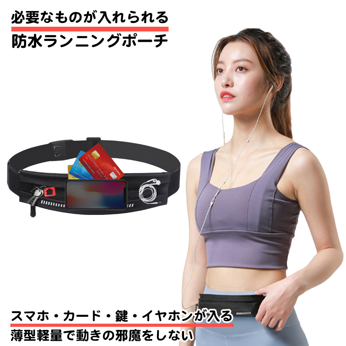 ■薄型 防水 軽量 ランニングポーチ 腰巻 スマホ お金 鍵 カード イヤホン ウエストポーチ メンズ レディース 腰 フィット 散歩 スポーツ