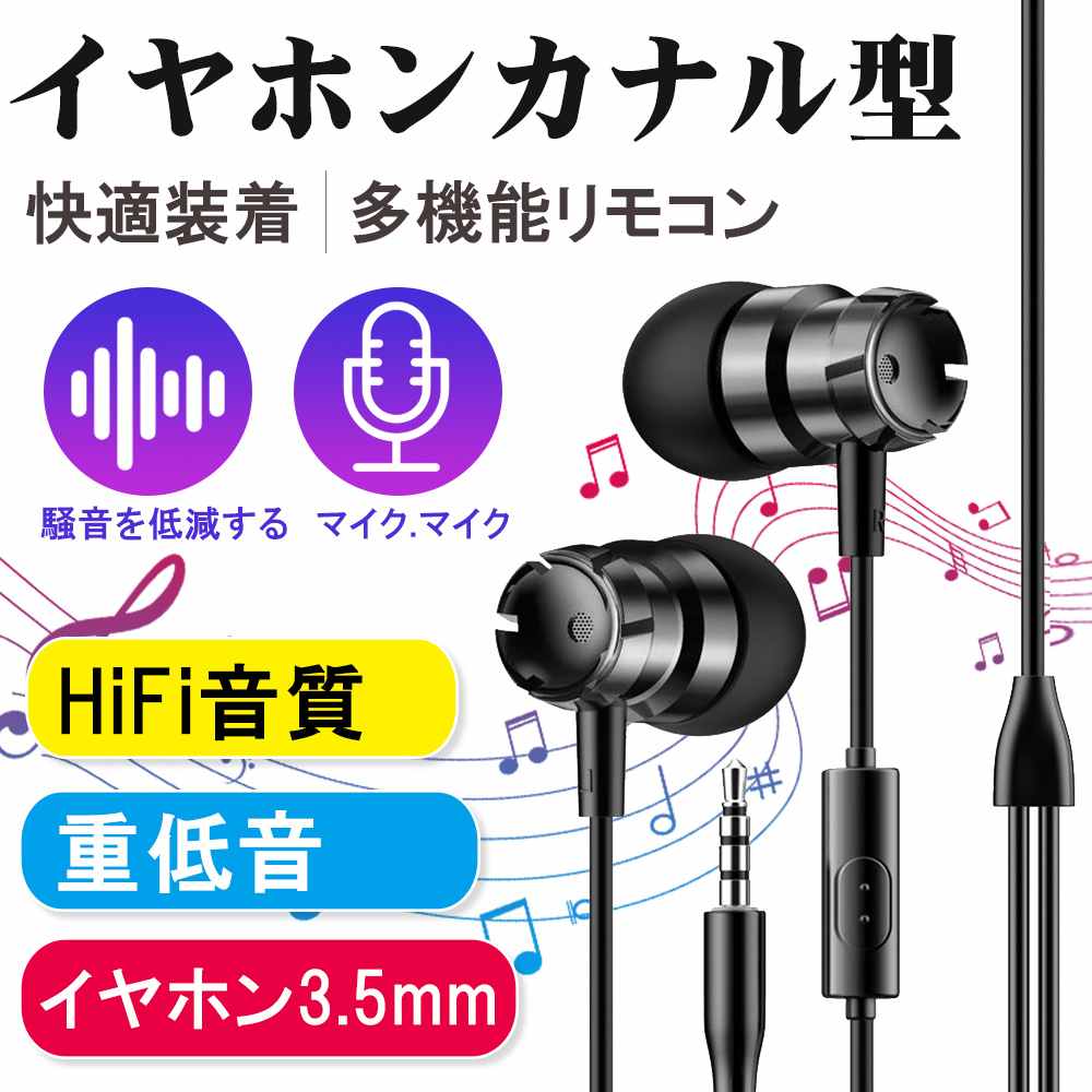 ほとんどのスマホやタブレット、PCに利用できるイヤホン 有線イヤホン ハンズフリー カナル型