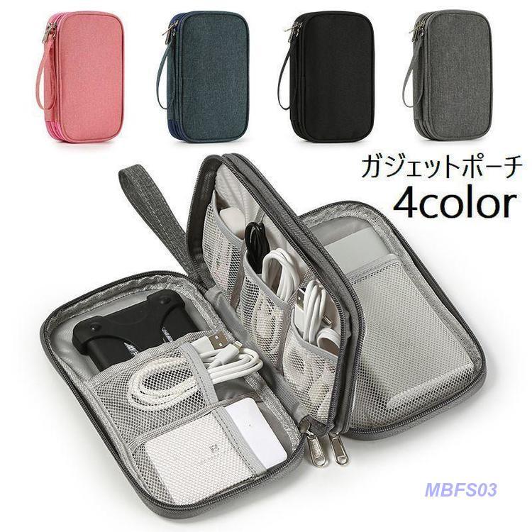 ガジェットポーチ ガジェットケース 収納ポーチ 小物入れ ケーブル イヤホン 充電器 スマホ PC周辺小物 多収納 ダブルファスナー 無地 シンプル