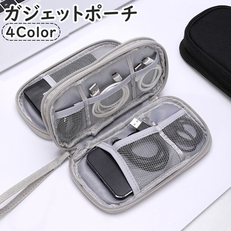 ■ガジェットポーチ ガジェットケース 2層 収納ポーチ 小物入れ ケーブル イヤホン 充電器 スマホ PC周辺小物 多収納 ダブル