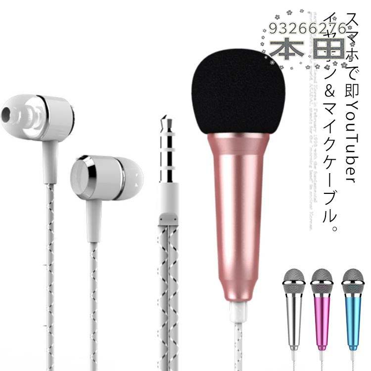 マイク・イヤホン統一型ケーブル イヤホン マイク付 イヤフォンマイク カラオケ 4色 スマホ 高音質 シンプル