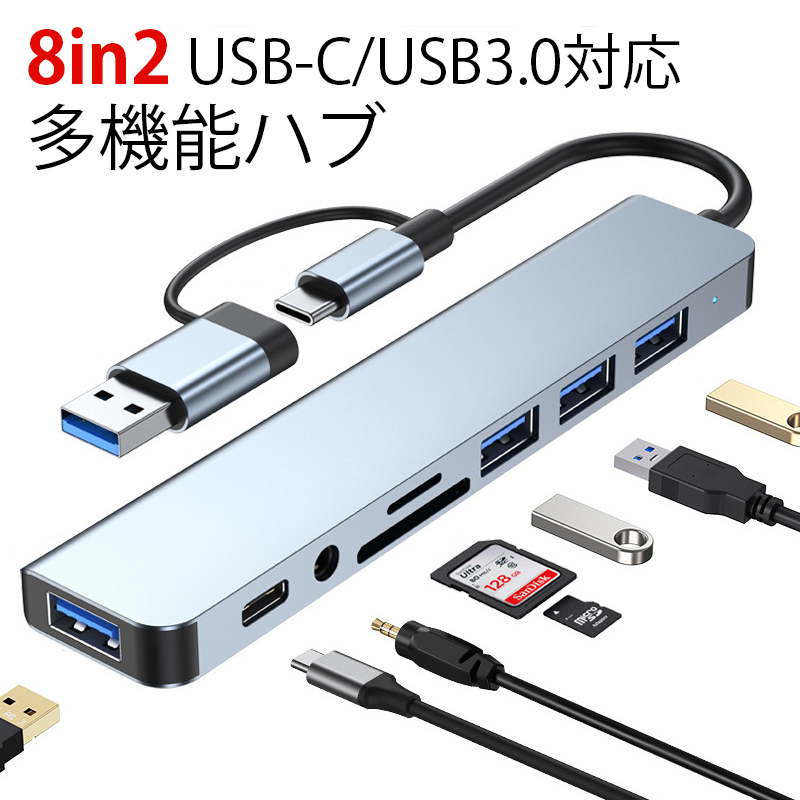 ■ドッキングステーション USB 3.0ハブ TYPE-Cハブ 8ポート PD対応 Macbook Pro ドック SDカード TFカード スロット 3.5mm イヤホン スマホ