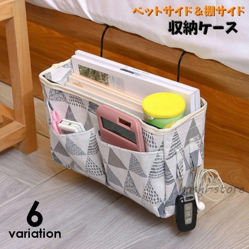 収納ケース 収納袋 ベットサイドポケット 収納ボックス 小物収納 外側ポケット フック付き リビング 寝室 リモコン イヤホン 鍵 スマホ 本