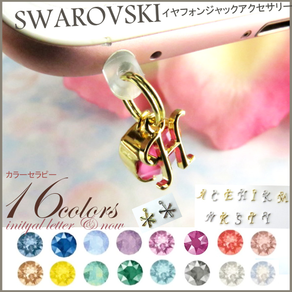 ■スワロフスキー イニシャル イヤフォンジャック 送料無料 イヤホン iphone スマートフォン スマホ ピアス 携帯アクセサリー ペア