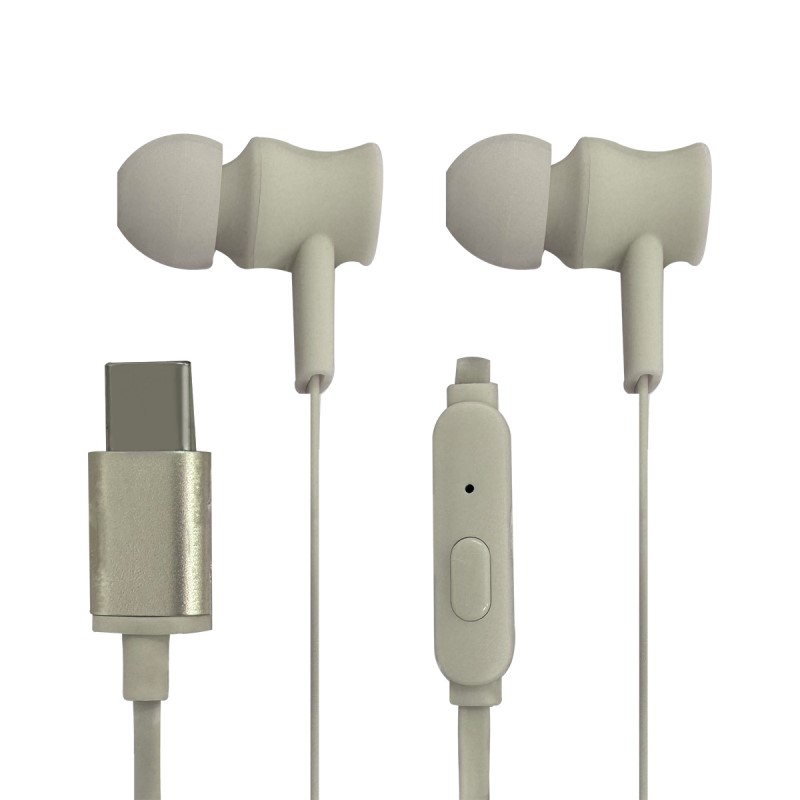 ■\三太郎ポイント5倍/ インプリンク Type-C 有線イヤホン アイボリー ポーチ付 1.2m iPhone16 スマホ タブレット対応 マイク付 イヤホン
