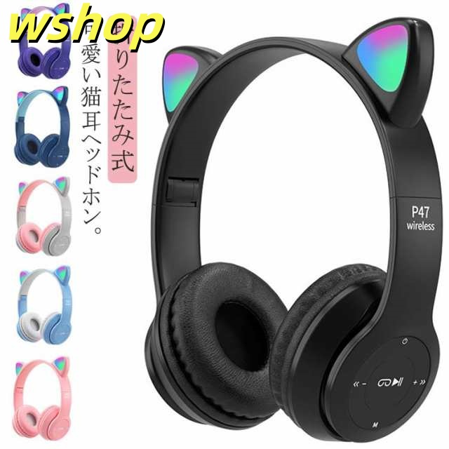 ヘッドホン 猫耳 イズキャンセリング ゲーム用 音楽 ピンク HIFI 子供用 大人用 Bluetooth5.0 イヤホン 折りたたみ式 TFカード対応 ヘッドフォン 高音質 LEDライト 可愛い 通話対応 i Phone i Pad スマホ PC プレゼント