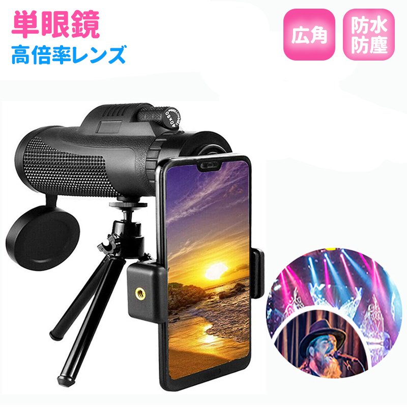 商品詳細: カラー:/画像通り サイズ:/F 【高倍率36倍】スマホで遠距離を高画質に撮れる単眼鏡が登場! ・コンサートやライブなどのイベントで使用すると、ステージ上のアーティストがまるで目の前にいるかのような感覚を味わえます。 ・驚くべき高倍率の望遠レンズが搭載されているので、遠くの風景や対象物をクッキリと見ることができます。 野生動物の観察や景色を満喫するには最適のツールです。 ・単眼鏡をクリップでスマホにセットすれば、簡単に撮影ができます。大切な瞬間をハッキリと記録して、思い出を残しましょう。 ・光学性能と耐久性にも優れています。明るく鮮明な視界を提供し、歪みのないクリアな画像を楽しめます。 ・スマートフォン用の三脚を使用すると、ぶれずに綺麗に撮影できます。 【キーワード】ライブ スポーツ観戦 アウトドア 登山 運動会 スマホ 望遠レンズ 軽量 スマホに簡単装着 スマホカメラレンズ 小型 携帯 子供 誕生日 プレゼント 高倍率 36倍 三脚 美術館 観戦 撮影 望遠 レンズ クリップ式 iphone スマホレンズ カメラレンズ 反射防止 三脚付属 簡単装着 携