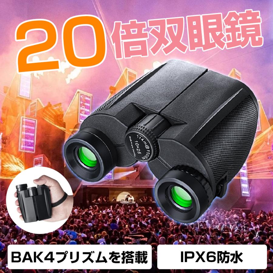 ■双眼鏡 高倍率 20倍 BAK4プリズムを搭載 IPX6防水 眼幅調整可能 明るい 軽量 長距離 ストラップ2種付き ケース付き 望遠鏡 コンサート 遠