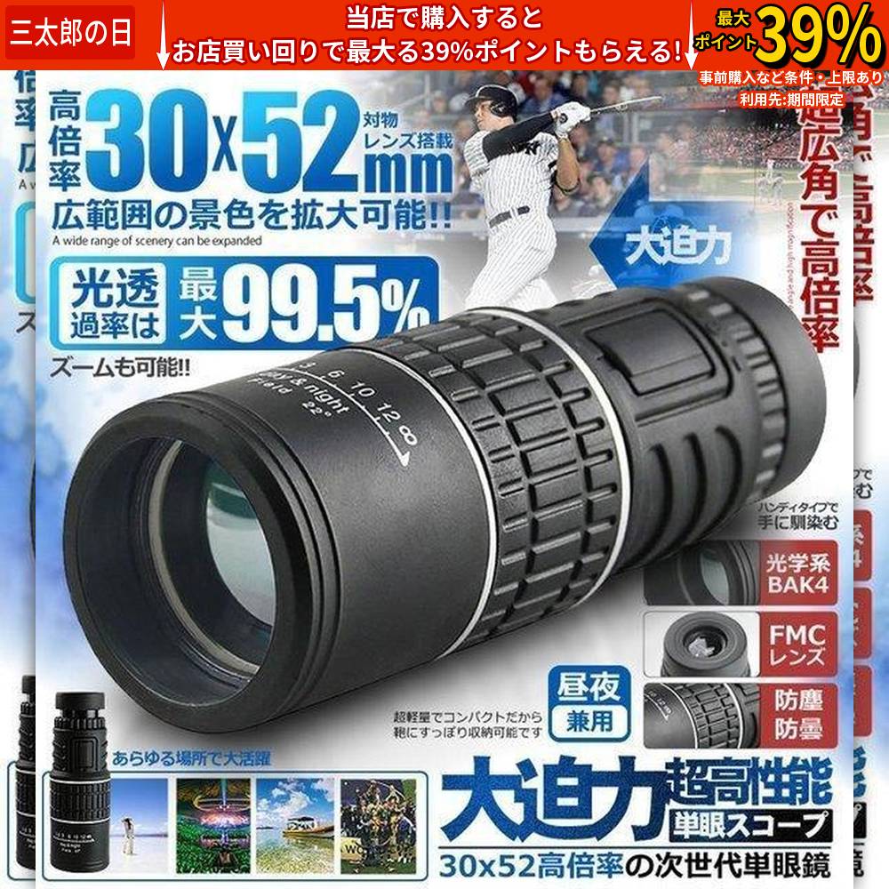 30X52 倍率 広角 ズーム スコープ 単眼鏡 望遠鏡 高性能 昼夜兼用 観戦 観察 運動会 コンサート 旅行 3052KOUSC