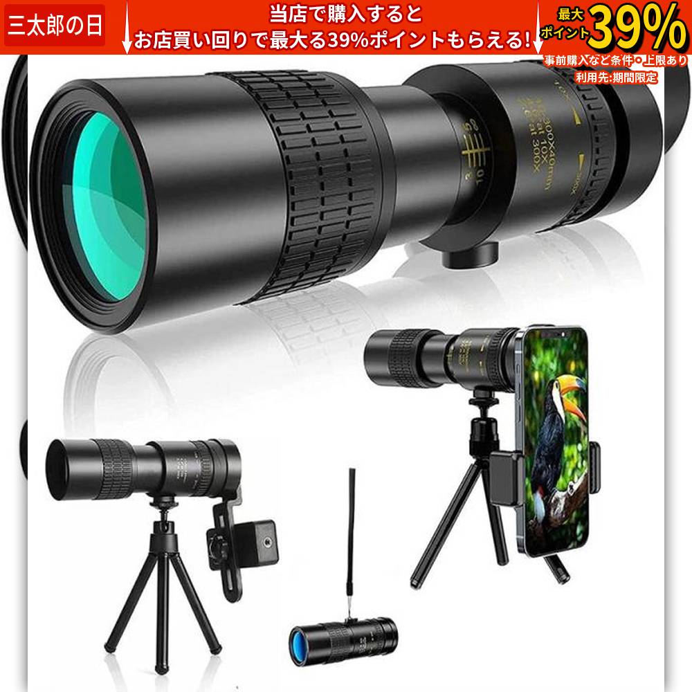 単眼鏡 望遠鏡 10-300x40軍用望遠鏡-4K 高倍率 ズーム式 高解像度 高透過率 手ぶれ防止用 三脚付き 防水霧 耐衝撃望遠鏡 使用簡単 軽量 コンパクト 携帯便利 観戦/観察/運動会/コンサート/スポーツ観戦/天体観測/山登り/お釣り/アウトドアに最適