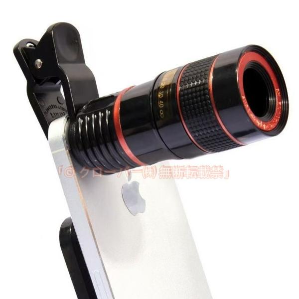 ■スマホ用 ズームレンズ 単眼鏡 望遠鏡 望遠レンズ レンズ 8倍 クローバー株式会社 クリップ式 携帯電話 タブレット 旅行 野鳥撮影 運動会