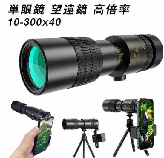 単眼鏡 望遠鏡 高倍率 10-300x40 軍用望遠鏡-4K 高解像度 高透過率 手ぶれ防止用 三脚付き 耐衝撃望遠鏡 軽量 運動会 山登り お釣り