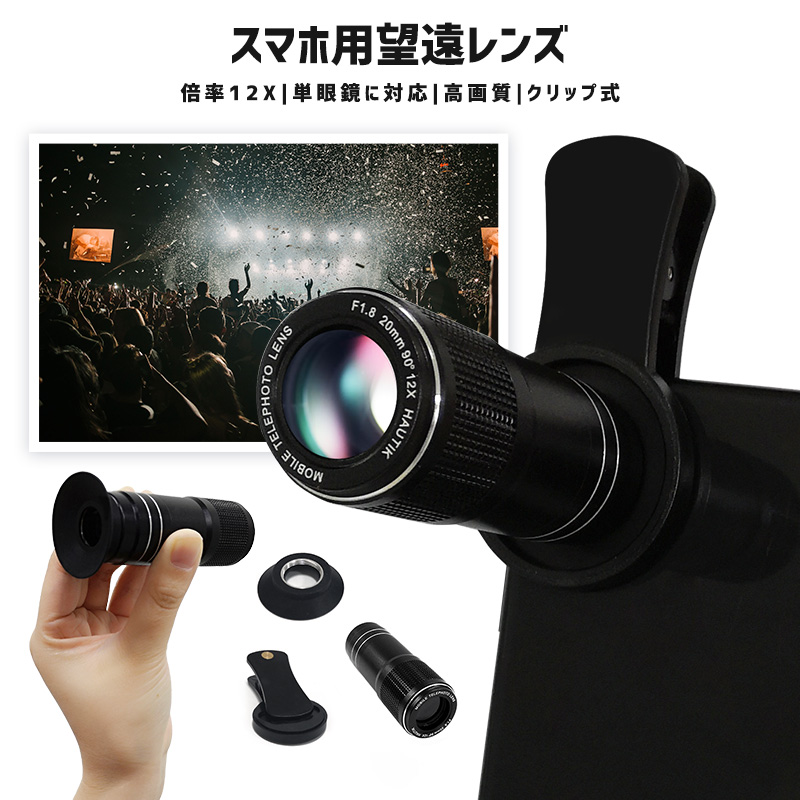 ■望遠レンズ スマホ用レンズ スマートフォンレンズ セルカレンズ 12倍望遠レンズ スマホカメラレンズ 単眼鏡 携帯用望遠レンズ